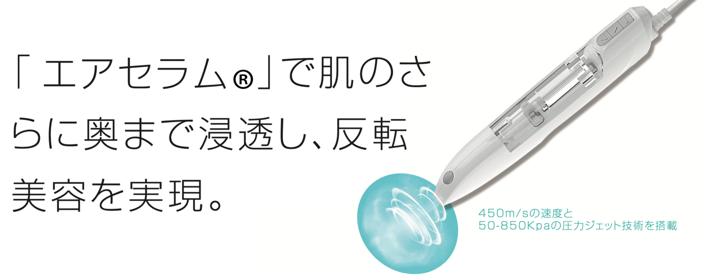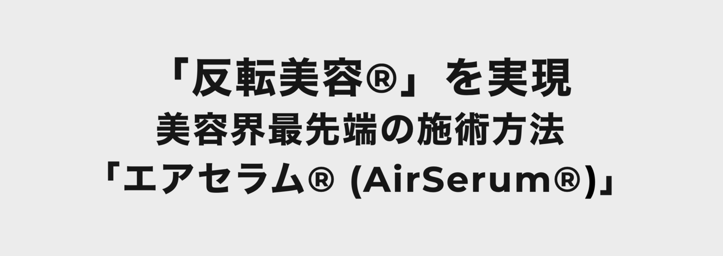 ここで指す「反転」とは、現状までの流れを反対のものにしていくという考え方。私たちはそんな反転美容を行うにあたり、最適な技法を選んで参りました。専門的な知識や技術を習得している美容従事者により選ばれた、反転美容の1つの美容法「エアセラム(AirSerum)」は、最高品質の美容液を選択し、最高クラスのマシンを用いて導入する手法です。
